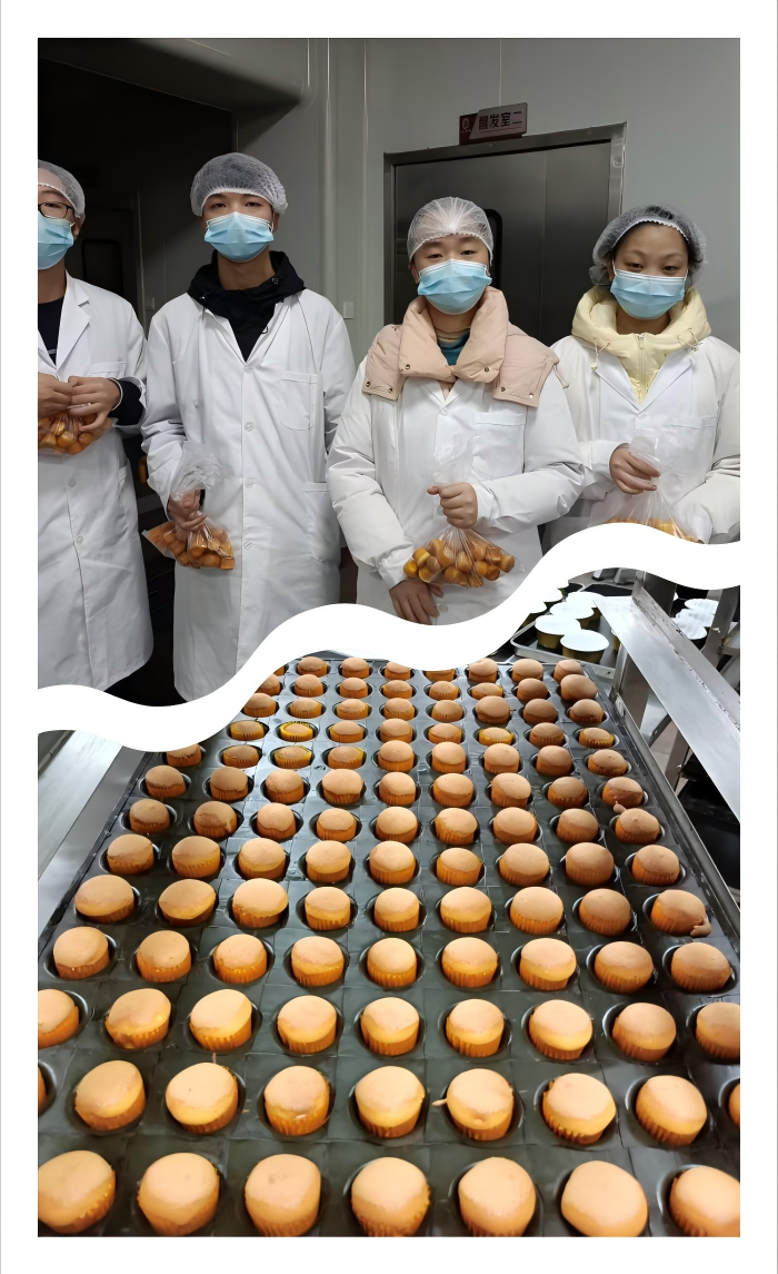 2025年11月21日,预制烘焙产教融合实训基地内奶香四溢,2023级食品五高班的同学们围绕小蛋糕批量标准化制作,开展了本学期第六次《焙烤食品加工技术》主题实训。本次实训延续“梯度化、实战化”培养思路,聚焦工业化生产逻辑,以“胚体均匀膨发、馅料填充稳定、形态整齐统一”为核心目标,推动学生从单份制作向批量把控的技能进阶,进一步深化产教融合的实战成效。