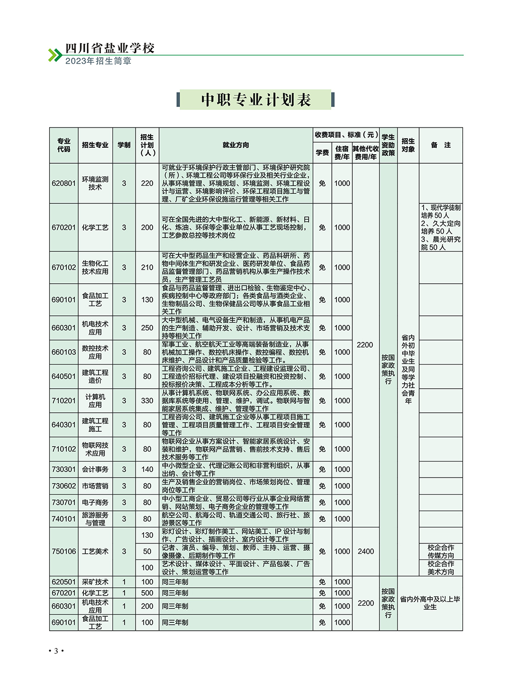 四川省盐业学校2023年招生简章