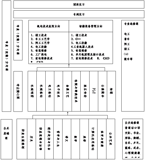 根据本地区企业用工需求以及岗位职业能力要求,我校机电技术应用专业专门化方向主要选择机电技术应用(机电设备安装与维修+机电产品维修)和智能设备管理(自动化生产线运行)两个方向。
